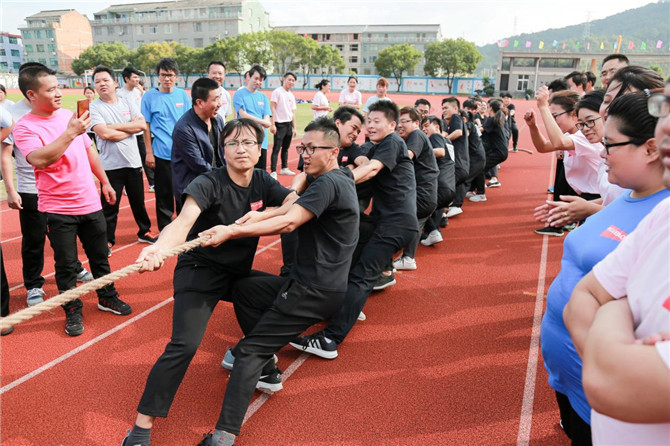 “拔(ba)河”作為運動(dong)會的(de)壓軸項目,也是(shi)(shi)精(jing)(jing)彩萬分。每(mei)個參(can)賽(sai)(sai)運動(dong)員(yuan)們(men)(men)為了(le)(le)團隊(dui)榮(rong)譽用盡全身(shen)的(de)力氣(qi)與對手(shou)頑強拼搏(bo),特別是(shi)(shi)當雙方勝負(fu)難分的(de)時刻,盡管(guan)他(ta)(ta)們(men)(men)此時都已(yi)經大(da)汗淋漓,身(shen)心疲憊(bei),但是(shi)(shi)他(ta)(ta)們(men)(men)仍毫不退縮,而是(shi)(shi)咬緊牙關,堅(jian)(jian)持(chi)到底,從(cong)他(ta)(ta)們(men)(men)身(shen)上看(kan)到了(le)(le)頑強的(de)毅力和拼搏(bo)精(jing)(jing)神。圍觀的(de)運動(dong)員(yuan)都變成了(le)(le)臨時啦啦隊(dui),為正在(zai)參(can)賽(sai)(sai)的(de)隊(dui)員(yuan)吶(na)喊助威。“拔(ba)河”比(bi)(bi)(bi)賽(sai)(sai)充分體現了(le)(le)運動(dong)員(yuan)們(men)(men)堅(jian)(jian)強,勇敢,團結(jie)協作的(de)精(jing)(jing)神。經過多輪(lun)比(bi)(bi)(bi)賽(sai)(sai),最終(zhong)由模具(ju)產(chan)業(ye)隊(dui)獲得“拔(ba)河”單項比(bi)(bi)(bi)賽(sai)(sai)第一名(ming)。