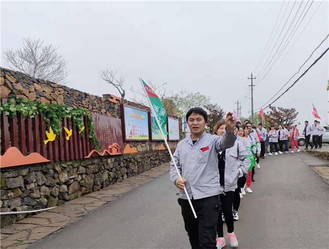 此(ci)次(ci)活動, 在注塑車間(jian)主管(guan)臧周峰的(de)帶領下,來(lai)到許家山,所有(you)隊員分成(cheng)6組,列隊前(qian)往活動地點。