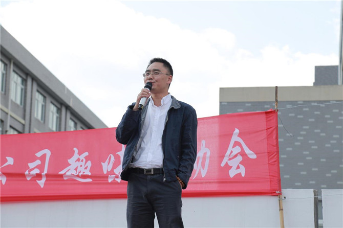 總經理趙磊宣布華寶趣(qu)味運動會開幕。