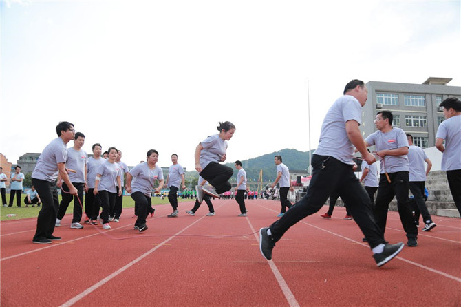 “集(ji)體跳繩(sheng)”,比(bi)賽(sai)每隊20人參加(jia),兩人搖繩(sheng),剩下(xia)18人依次(ci)跳過繩(sheng)子(zi)。比(bi)賽(sai)過程中有人絆(ban)到繩(sheng)子(zi),有的隊伍沉穩應對,有的隊伍則亂了(le)分寸,接連幾次(ci)絆(ban)到繩(sheng)子(zi)。最終行政中心隊以(yi)3分鐘內跳了(le)235個獲(huo)得“集(ji)體跳繩(sheng)”單(dan)項比(bi)賽(sai)第一名。