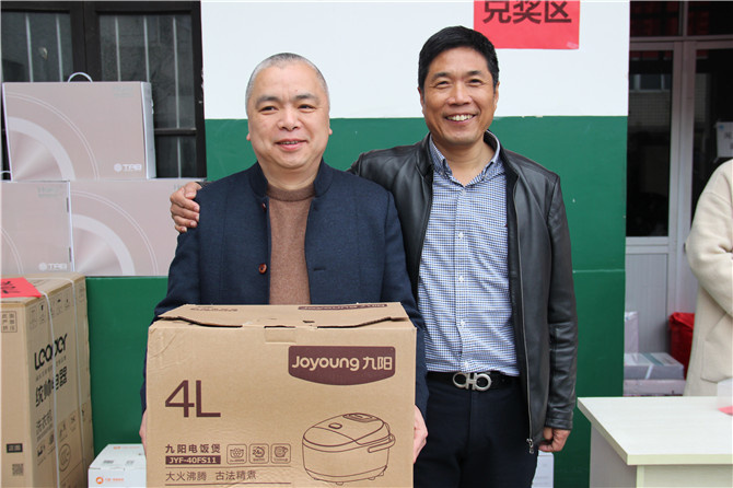 華寶公司(si)為(wei)了迎接和(he)感謝2017年的辛勤付出及時返崗的員工(gong)(gong),在董(dong)事長(chang)胡仁寶先(xian)生的親(qin)自帶領(ling)下(xia),公司(si)為(wei)員工(gong)(gong)準備了豐(feng)厚的獎(jiang)(jiang)品:大到洗衣機、掃地(di)機、電飯煲(bao)小(xiao)到被子(zi)、背包、四件(jian)套、開水(shui)煲(bao)、電吹風、雨傘(san)、保溫杯等等只要到場人人有獎(jiang)(jiang)。
